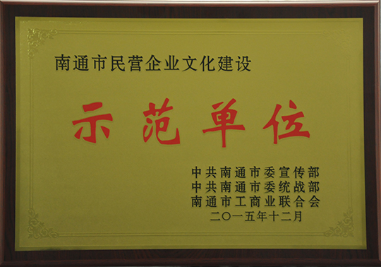 2015年12月1日,南通三圣石墨設備科技股份有限公司被中共南通市委宣傳部、中共南通市委統戰部、南通市工商業(yè)聯(lián)合會(huì )命名為"南通市民營(yíng)企業(yè)文化建設示范單位"。