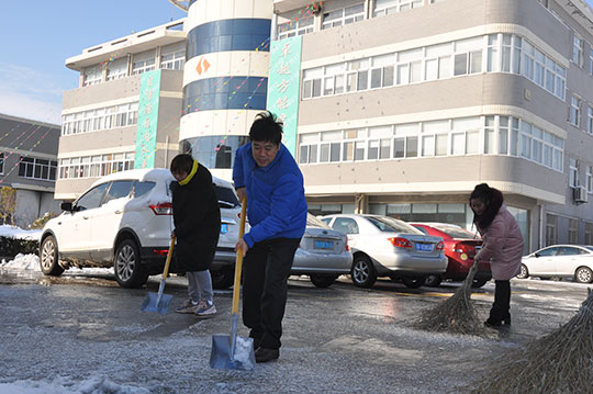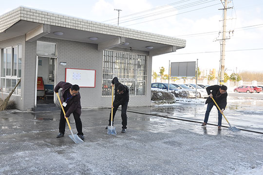 26日一大早,三圣高管團隊在馮圣君董事長(cháng)的帶領(lǐng)之下,操起鐵鍬,揮舞掃帚,分區分片,親自清除廠(chǎng)區主干道上的結冰積雪。為了安全與暢通,現場(chǎng)熱火朝天。