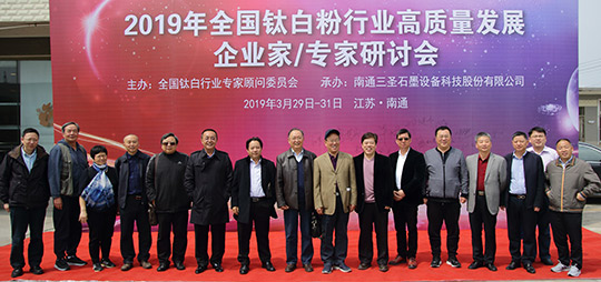 2019年3月29日至31日,2019年鈦白粉行業(yè)高質(zhì)量發(fā)展企業(yè)家/專(zhuān)家研討會(huì )在南通三圣石墨設備科技股份有限公司召開(kāi),全國鈦白粉行業(yè)來(lái)自四川、重慶、廣東、安徽、江蘇、浙江、甘肅等省、市的主要鈦白粉企業(yè)的董事長(cháng)、總經(jīng)理或技術(shù)負責人、全國鈦白粉行業(yè)專(zhuān)家顧問(wèn)委員會(huì )的專(zhuān)家、國家化工行業(yè)生產(chǎn)力促進(jìn)中心鈦白分中心主任、鈦白粉產(chǎn)業(yè)技術(shù)創(chuàng )新戰略聯(lián)盟理事長(cháng)等近三十位企業(yè)家、專(zhuān)家、領(lǐng)導齊聚南通,聚焦鈦白粉行業(yè),共謀高質(zhì)量發(fā)展。