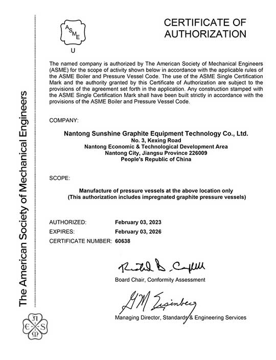 實(shí)力見(jiàn)證榮耀,南通三圣石墨設備科技股份有限公司將以此次獲得ASME “U”鋼印認證為新的起點(diǎn),繼續書(shū)寫(xiě)行業(yè)傳奇,為全球客戶(hù)提供更優(yōu)質(zhì)的產(chǎn)品和服務(wù)!