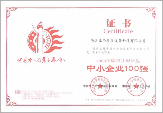 經(jīng)第三界中國中小企業(yè)家年會(huì )組委會(huì )評定,我公司被評定為:2008中國科技創(chuàng )新型中小企業(yè)100強,并頒發(fā)了證書(shū)和牌匾.