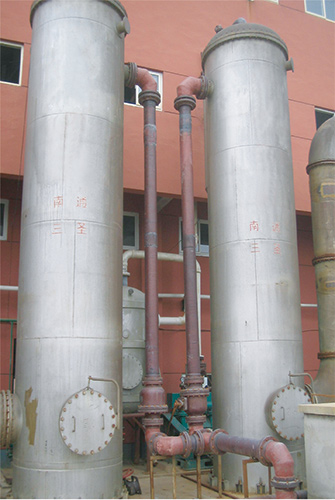 代替傳統的鉛、不銹鋼盤(pán)管式換熱器,本設備材質(zhì)為不透性石墨、較鉛、不銹鋼有良好的耐腐蝕性